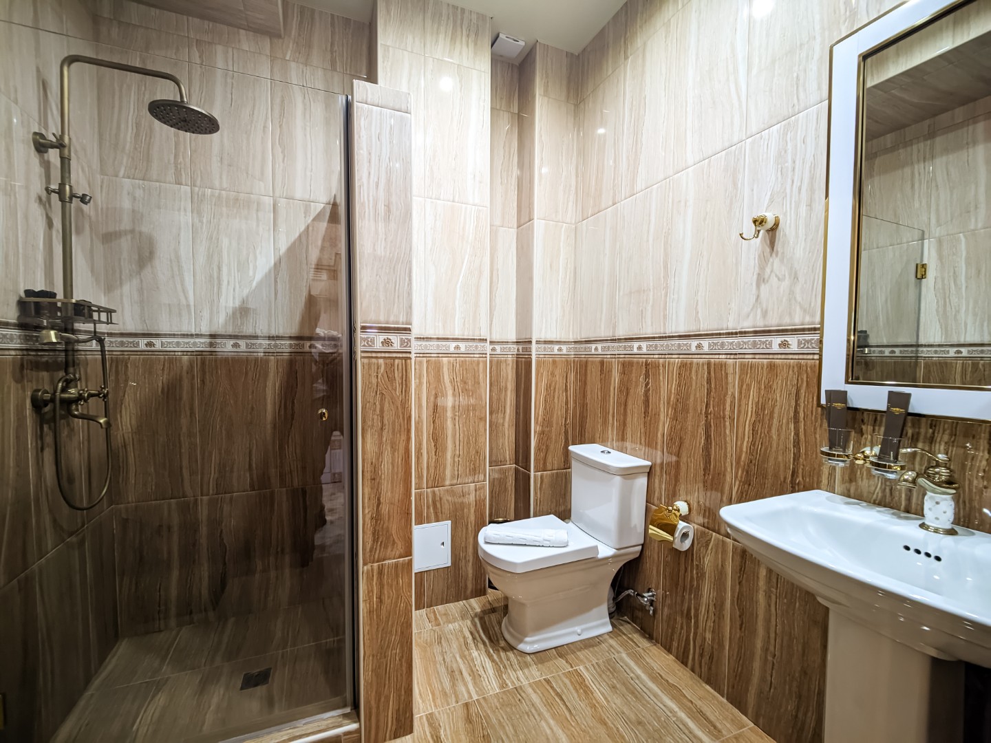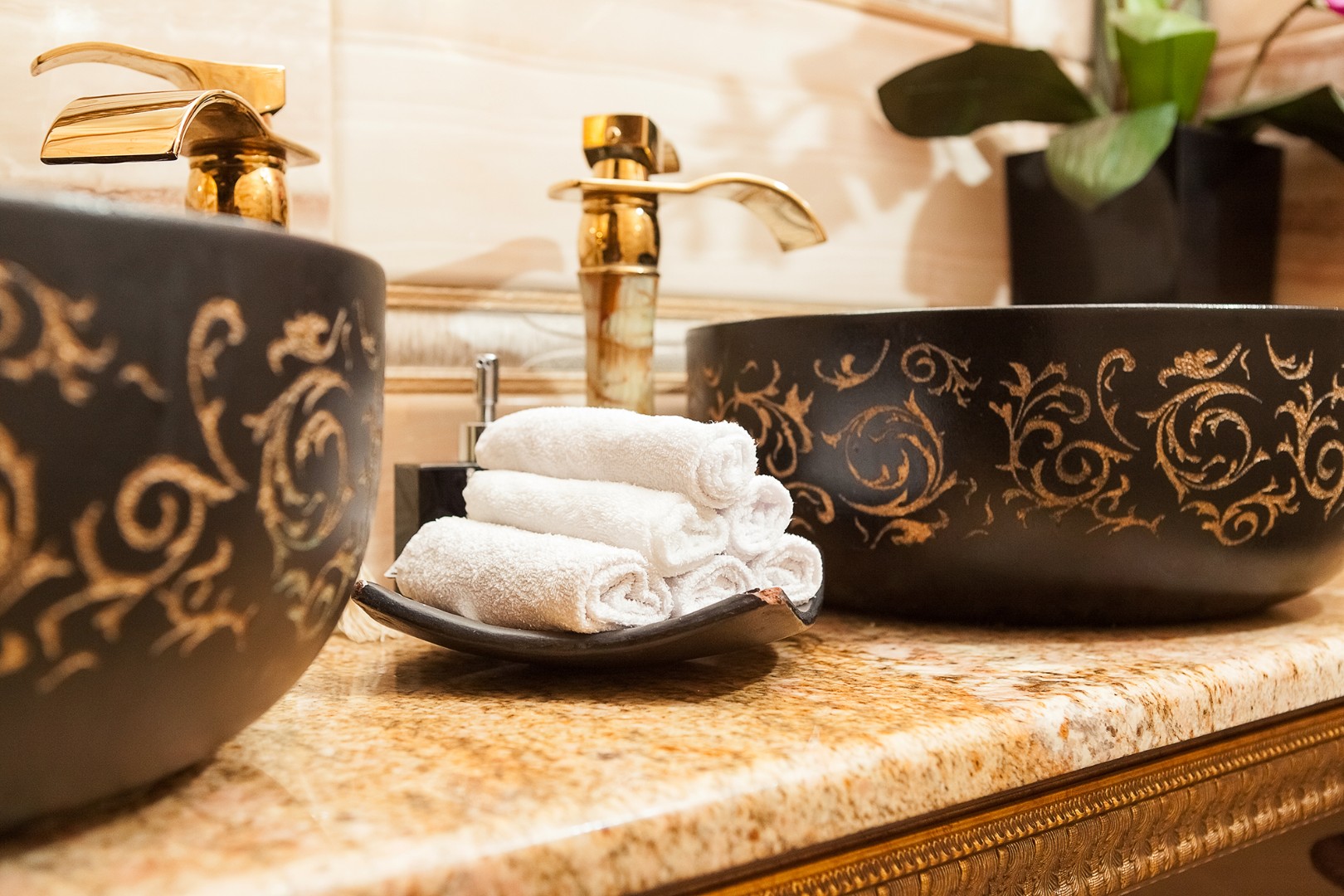 В ванной: душевая кабина, умывальник, санузел, на 2 персоны: полотенца, халаты, тапочки, фен, бесплатные гигиенические принадлежности. По просьбе гостей возможно добавить всё необходимое!